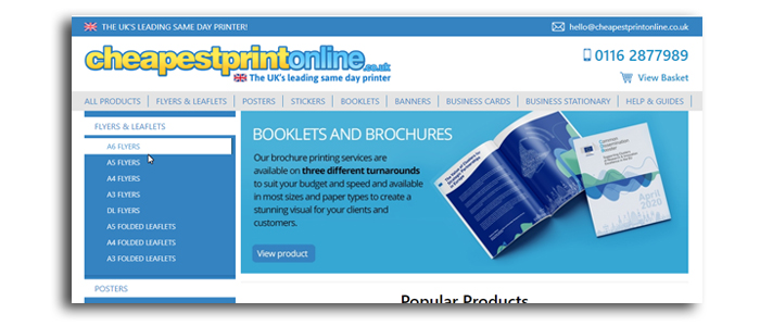 You will see our menu of products clearly labelled down the left menu and also along the top of the page. Choose your product from this menu by clicked on the relevant button.